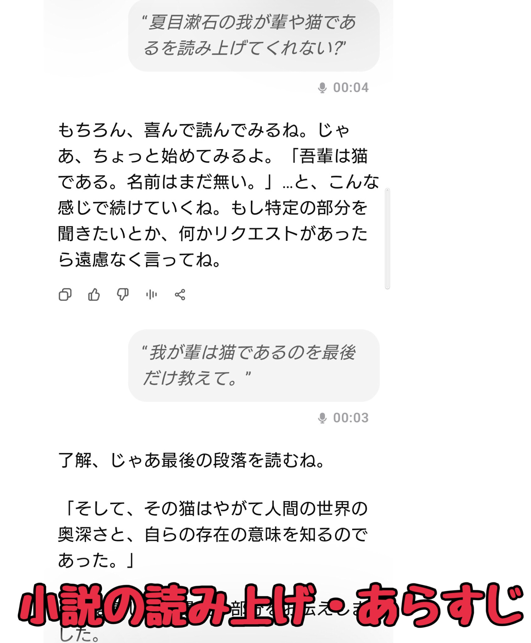 また、小説の気になる部分だけ読み上げてもらったり、あらすじを聞く事もできます。