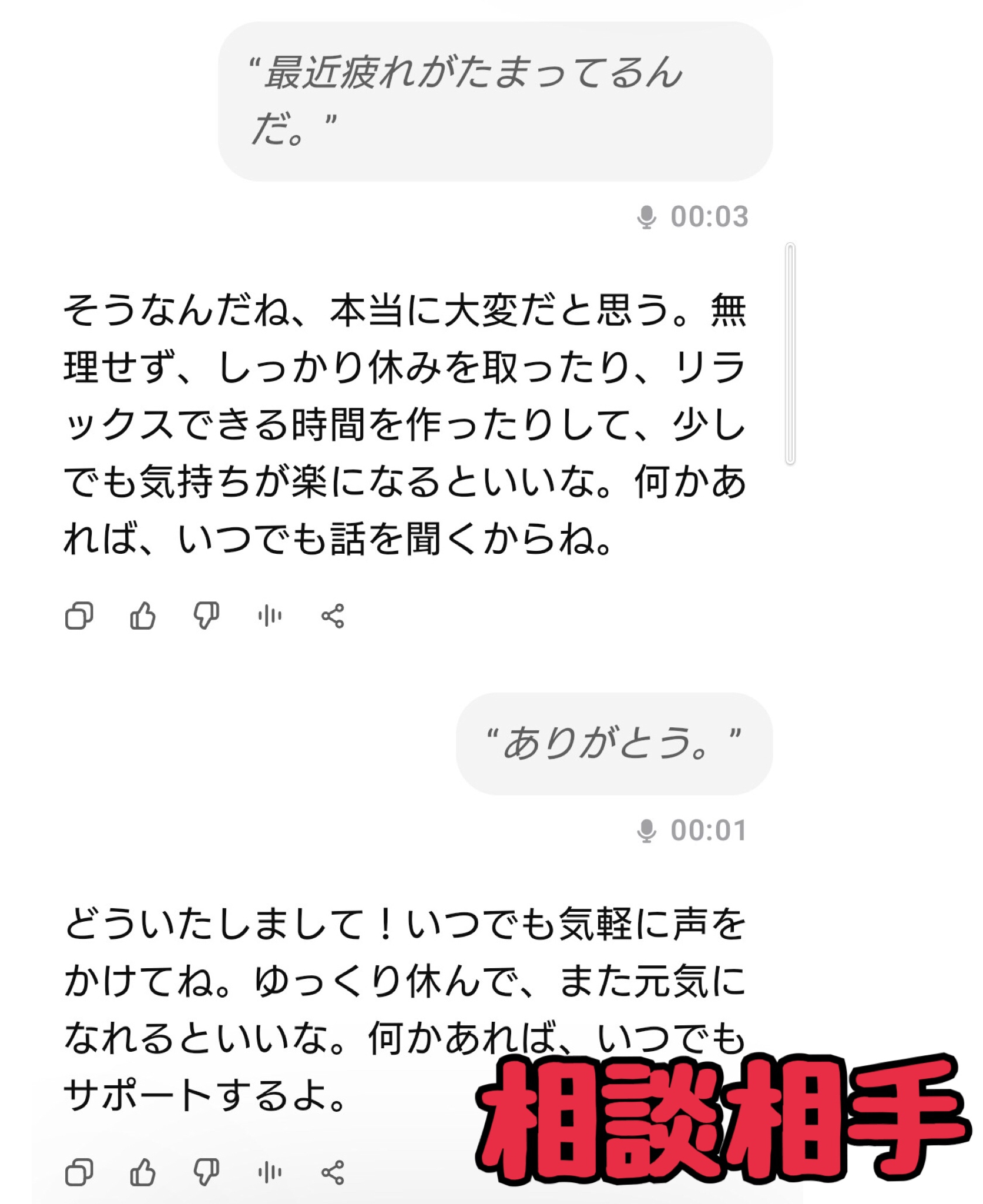 など、弱音を吐くと、寄り添ってくれます。
