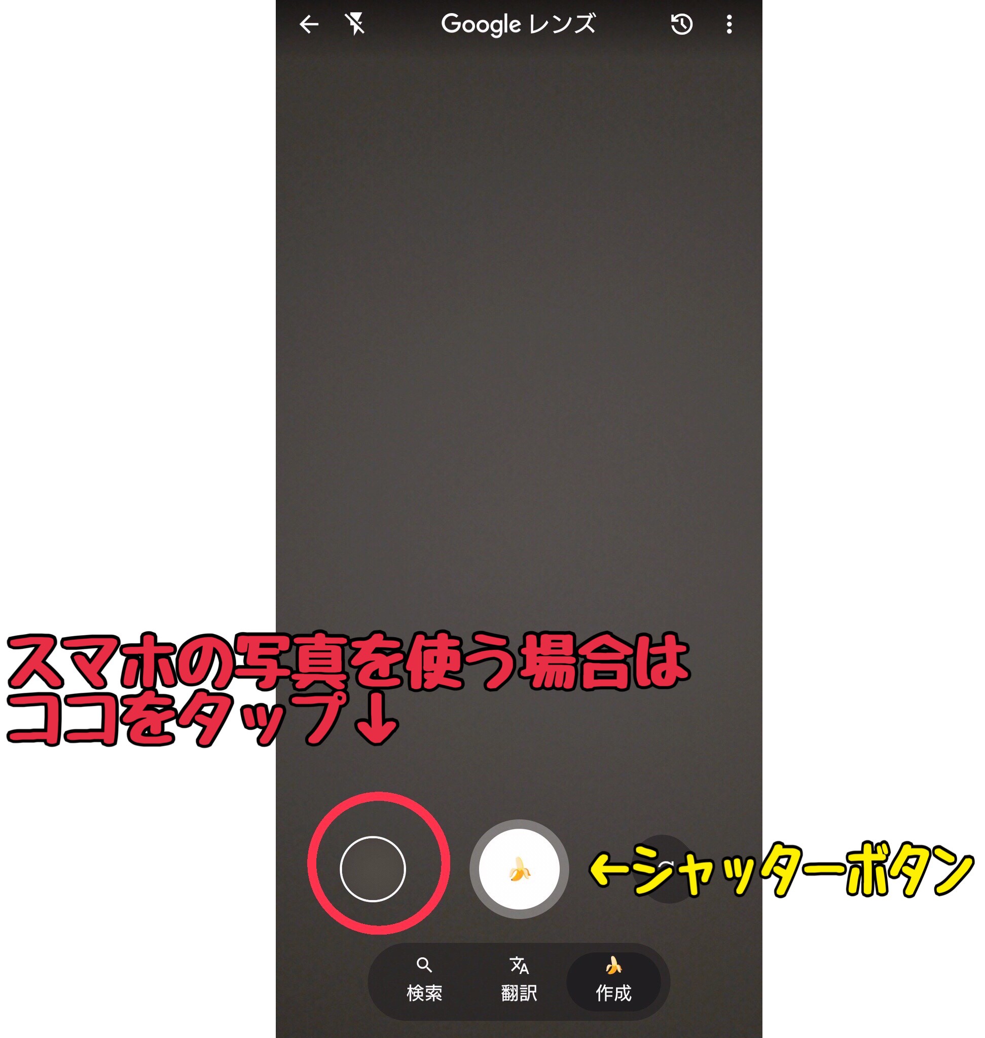 ※スマホに保存してある写真を使う場合は、シャッターの左側の◯をタップします。